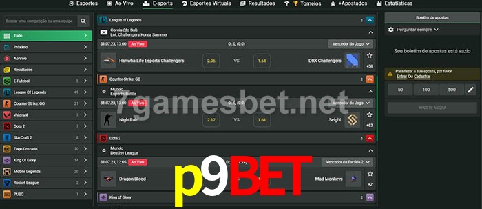 O p9bet oferece uma grande seleção de opções de apostas em e-sports com probabilidades competitivas